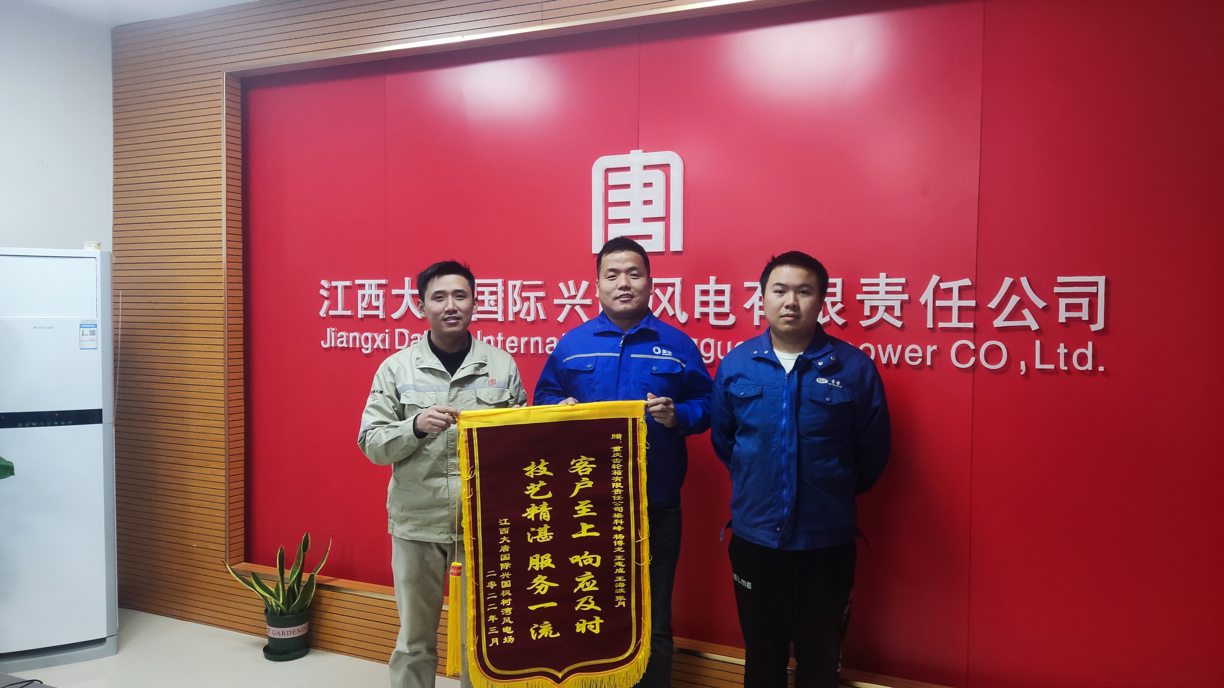 202238日,重齒公司獲得江西大唐云峰嶂風電場贈予錦旗一面。錦旗寫道:客戶至上、響應及時,技藝精湛服務一流。這短短的16個字包含了梁科峰、楊博龍等五名運維同志連續多天的汗水和辛勞。在極端天氣凍雨影響,道路結冰、設備無法進場作業等困難面前,他們各司其職,加班加點,用最短時間圓滿完成消缺工作。他們辛勤付出、不辭辛苦、任勞任怨的工作精神,把業主的需求放在第一位的工作態度,得到了業主的高度認可,也為公司實現首季開門紅匯聚了強勁的精神力量。